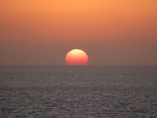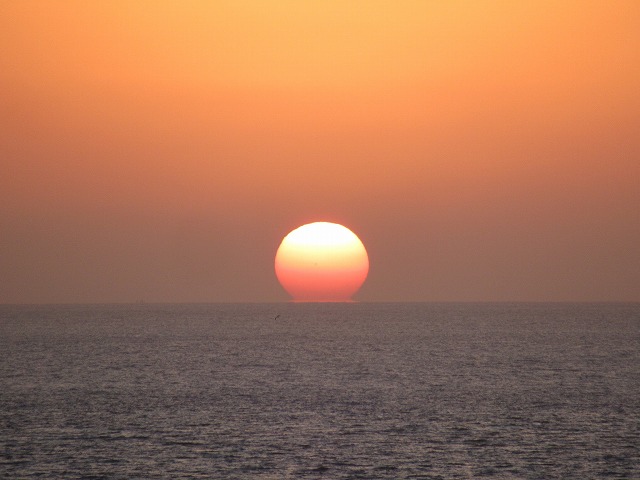 廉価のカメラなので分単位まででしかわからないと思っていたが、各写真の「プロパティ」を開いたら秒まで記録されていた。 太陽の下部が水平線に届いたのが38分台の前半、全体が沈んで消えてしまったのが40分台の終わりか41分台の初めなので、やはり冬の今、太陽の直径(体)分が移動するには3分弱かかっているなと再確認。 それにしてもおみごとな光景と、その刻々の変化に出会わせていただきただありがたいの一言だ。