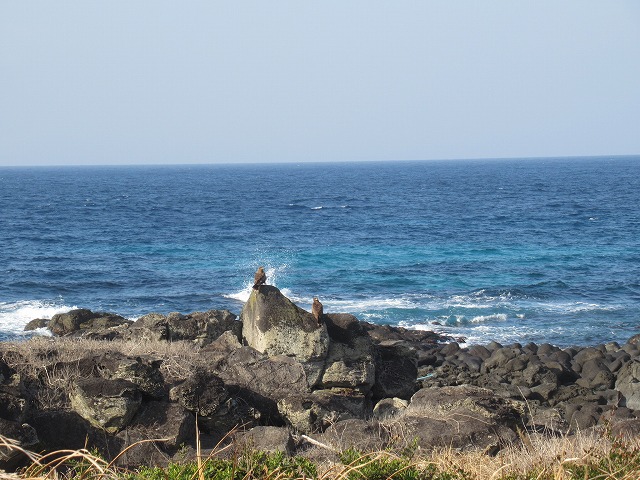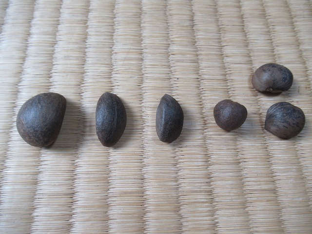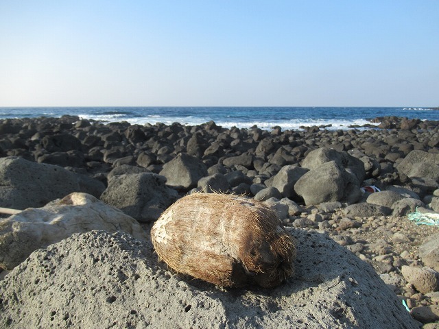 こちらに気づいた後もしばらくは動かなかったがそのうちに1羽が飛び立ち、上空を舞い始めた。もう一羽はその後もしばらくはとどまっていたけれどついと飛立ち、 近づいたり離れたり舞い合いながら2羽で飛び去って行った。 仲の良いことだ。 調べてみると、2000~3000km離れたフィリピンやミクロネシアなど熱帯地方から黒潮(対馬海流)に乗ってくるらしい。いったいどれくらいの日数で? 縄文時代の遺跡からもこれを器として使ったものが見つかっているそうで、2,3000年、それ以上前からのつき合いなのだろう。 これを土に埋めたら発芽するだろうか? 冬は寒くなるこの地ではかわいそうな気もする。 1月17日(土曜日)