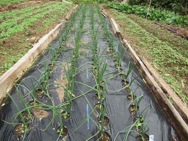 草(菜花など)をとり、草木灰と追肥を撒いた。4月には美味しい新タマネギになってくれるのが楽しみだ。