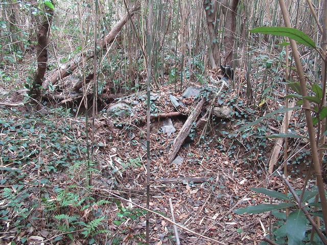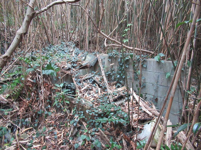 1970年代半ばに家を引き払って大阪へ移住したのちは無人の地になったまま。ちょうど50年が過ぎて今に至っている。 人や牛車、のちには耕運機も出入りした入口にも竹が密集しており、剪定ばさみなどで伐採しなければ入っていけない。 芋ガマは部屋の下に掘った深さ1.5メートルほどの穴で、秋に収穫したサツマイモを種芋として保存していた場所。流れ込んだ土などで少し埋まっているがまだ当時の形は留めている。 台所や板間があった場所にはむき出しのブロック壁が残っている。この周囲がどんな造作でどんな風に使われていたか、はっきり思い出せないのは哀しい。
