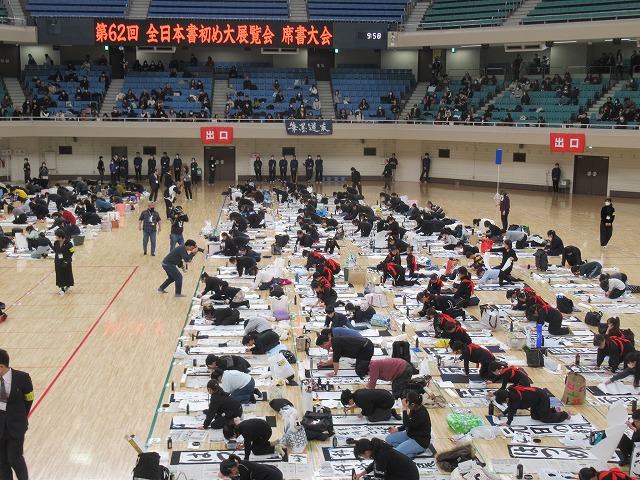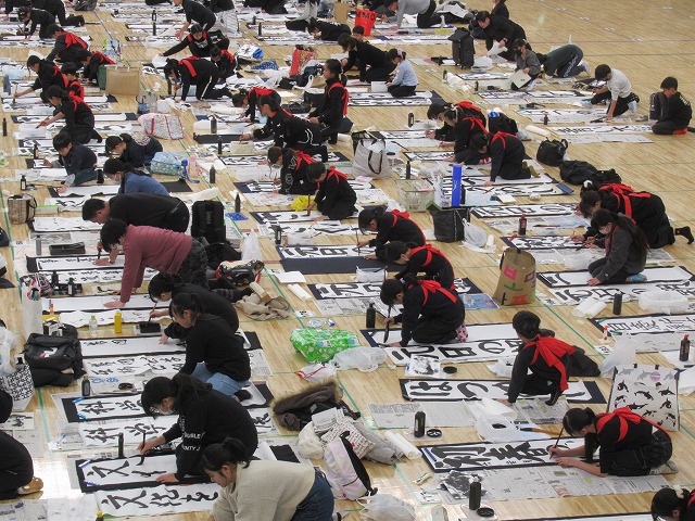 数十年前に入場したときは歌手が歌い、聴衆も椅子から立ち上がって共に歌ったりこぶしを突き上げていたアリーナ席。 今はすべてがとりはらわれてだだっ広い床張りになっており、老若男女数百人が一斉に書と格闘していた。 コンサートの時とは対照的に沈黙のなかで奮闘する20数分。スタンド席から応援するこちらも無言で息をのんで見守り、静かな時間が流れた。 心身ともに引き締まるひと時を味わわせてもらい、感謝だ。 1月4日(日曜日) 年賀状を眺めていたら、ある方から 「「感性を鈍らせないこと」「深く考えること」「毎日体操すること」「よく眠ること」「脱力すること」「楽しむこと」 こんなことを意識しながら日々を送っています。 戦争がない平和な世界になることを祈りつつ...」 との文をいただいた。 静かな闘志だなと感銘した。